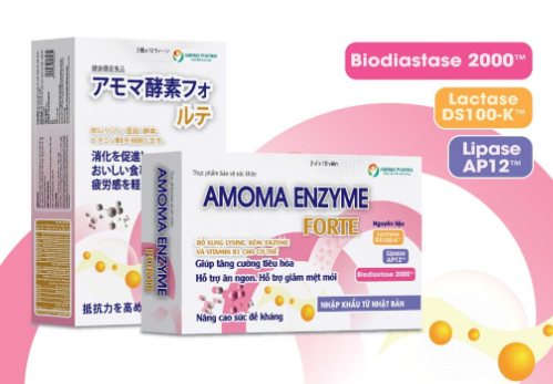 AMOMA ENZYME FORTE là sản phẩm bổ sung enzyme tiêu hóa, lysine, kẽm và vitamin nhóm B, hỗ trợ tiêu hóa hiệu quả, giúp ăn ngon, tăng cường đề kháng và giảm mệt mỏi. Sản phẩm phù hợp cho cả trẻ em biếng ăn, người lớn ăn kém, hấp thu kém, rối loạn tiêu hóa, suy nhược cơ thể.